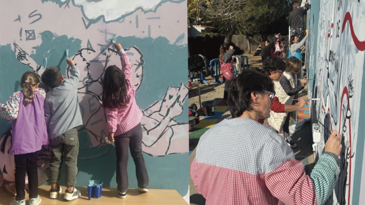 La pintura mural és un espai inmens ple de possiblitats que serveix d’amplificador d’idees, sentiments comuns o esperances col·lectives, I aixó a les escoles encara té més podencial.
